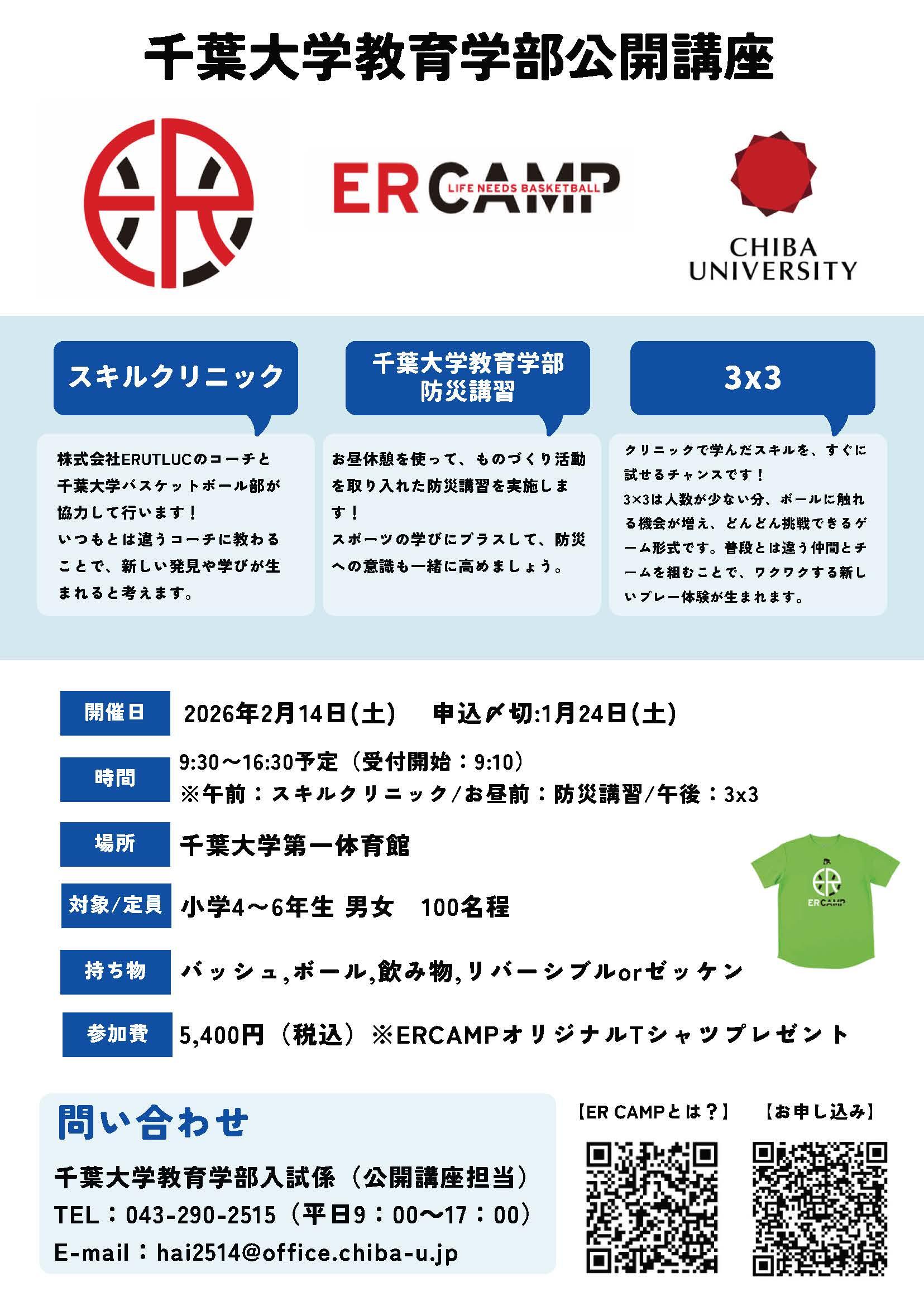 千葉大学教育学部公開講座「ER CAMP」開催のお知らせ