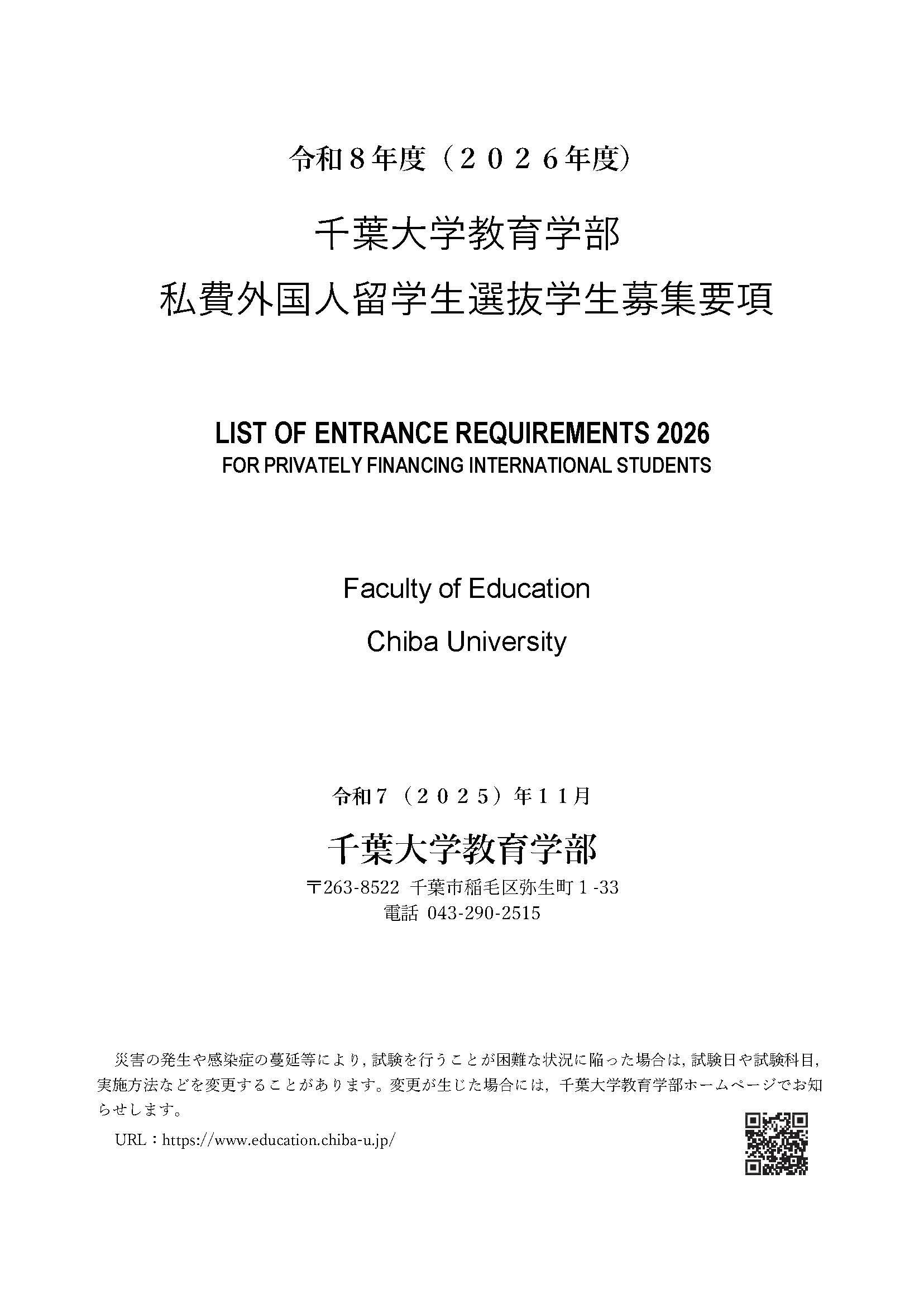 入学者選抜要項は、千葉大学ホームページで公開しています。