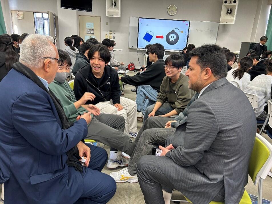 2025年12月12日(金)、イラクのバクダード大学及びムスタンシリア大学の教員、研究者や学生らが日本式教育導入の参考とするため、教育学部附属中学校の視察に訪れました。異学年交流の「English Festival !」や生成AIを活用した授業を参観後、附属中学校の行事や生徒会活動、道徳教育についての説明に対して、熱心な質疑応答が行われました。